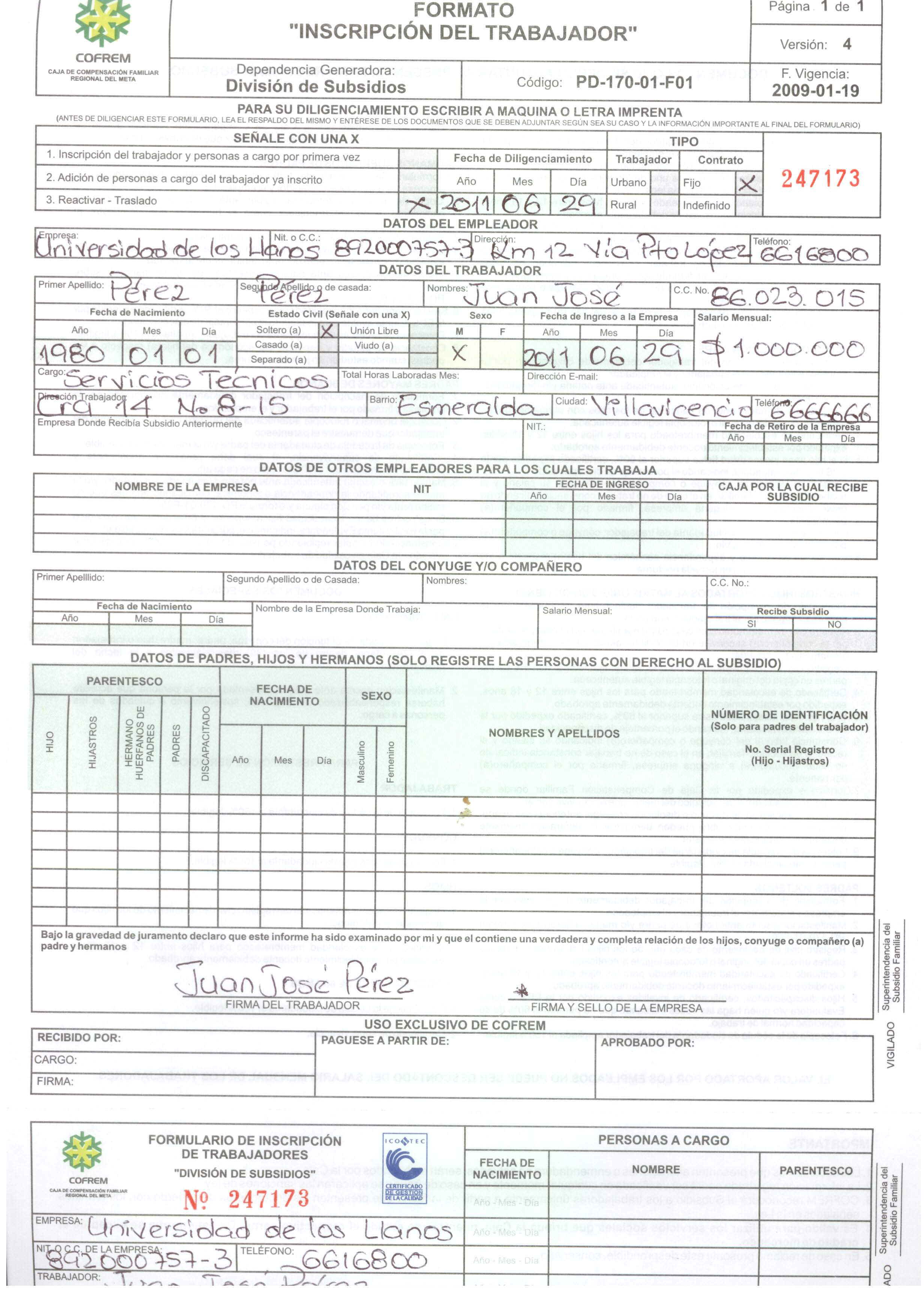 Formulario COFREM