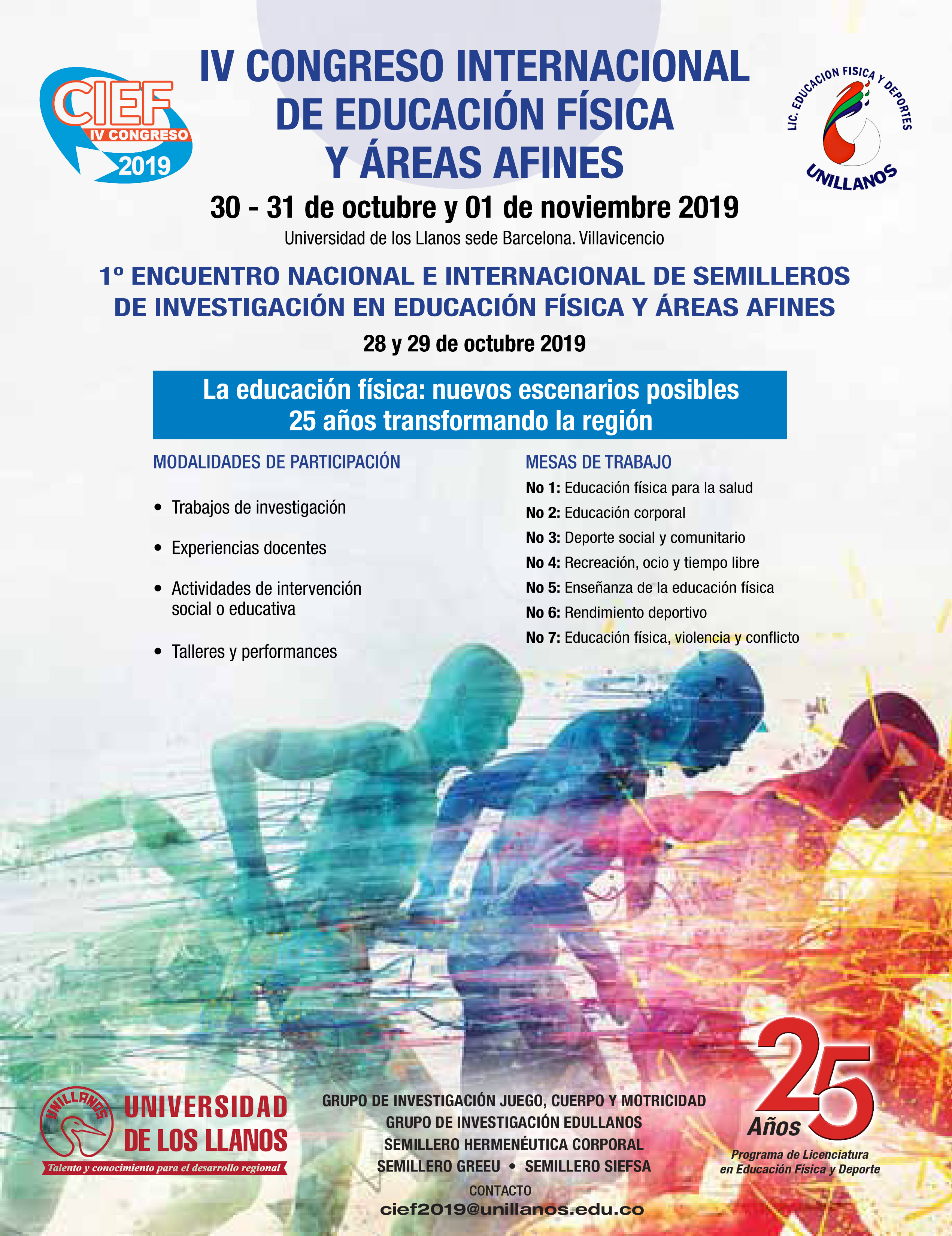 Este encuentro es realizado por los grupos y semilleros de investigación del programa de Licenciatura en Educación Física y Deportes de la Universidad de los Llanos, con el fin de reunir a estudiantes investigadores de cada Universidad para compartir diferentes proyectos que se vienen ejecutando.