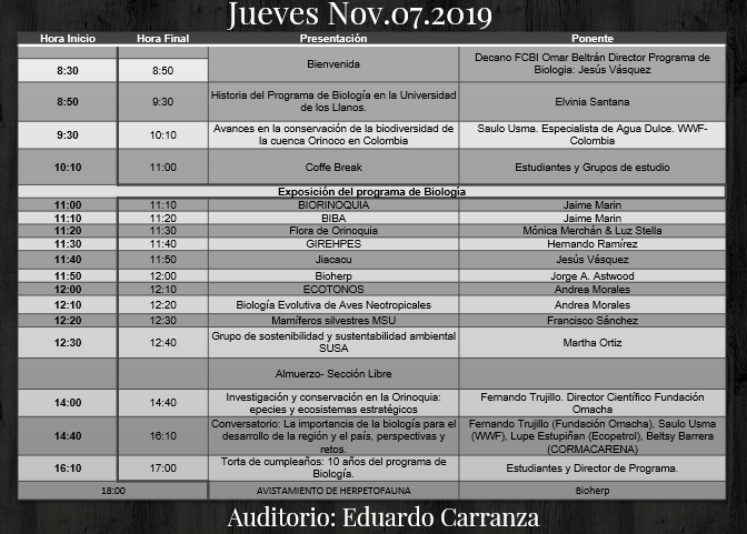 Este evento académico y cultural se realizará los días jueves 7 y viernes 8 de noviembre en el Auditorio Eduardo Carranza, sede Barcelona de la Universidad de los Llanos y contará con la participación de la ONG WWF Colombia, Fundación Omacha, CORMACARENA y ECOPETROL.
