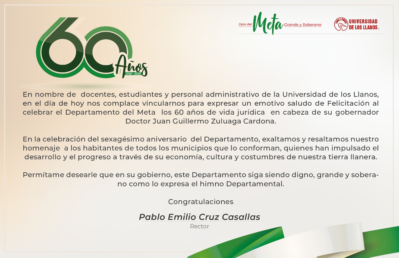 Felicitación a los 60 años del Meta