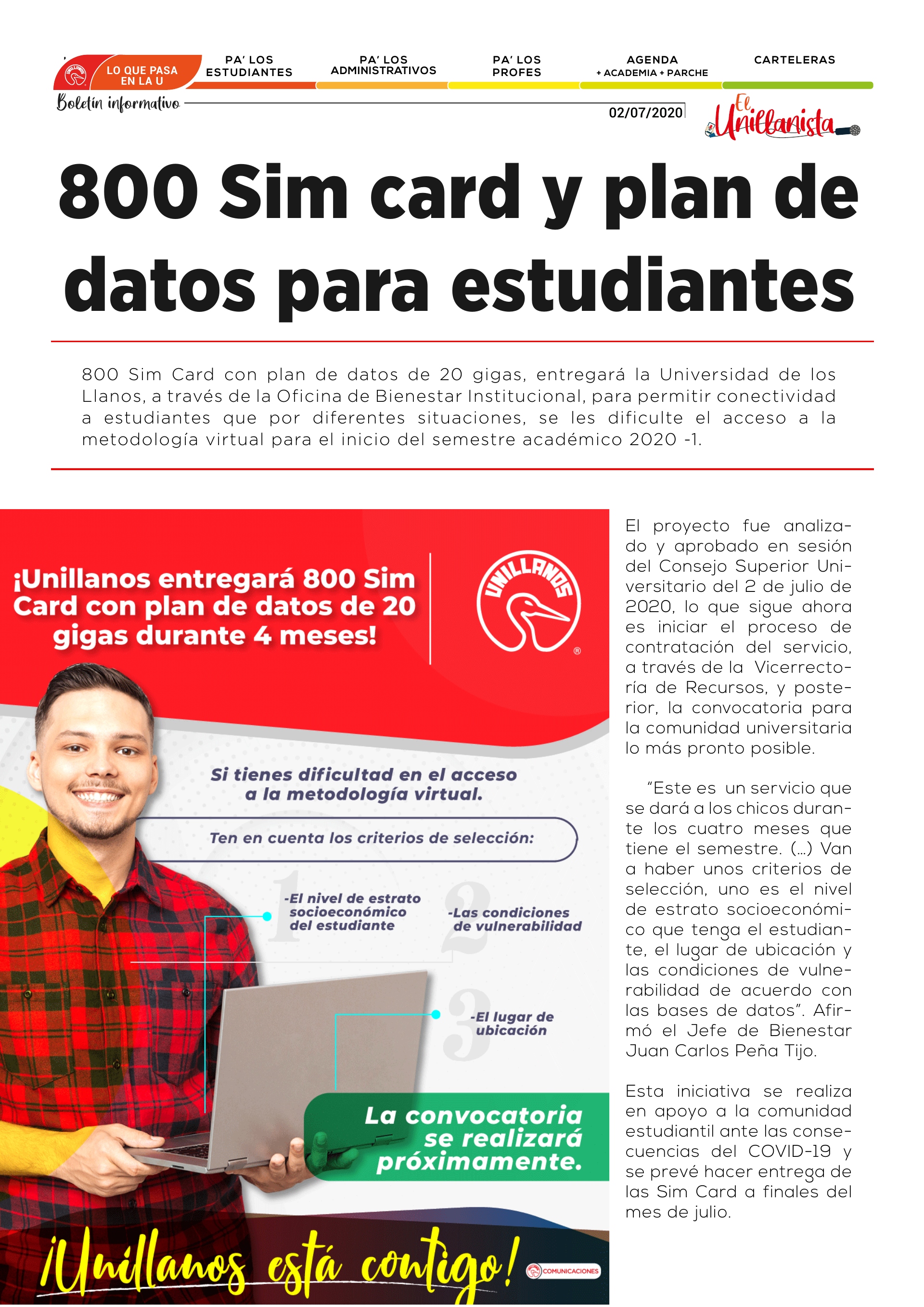 Unillanos apoya la conectividad de estudiantes mediante Sim Card con plan de datos