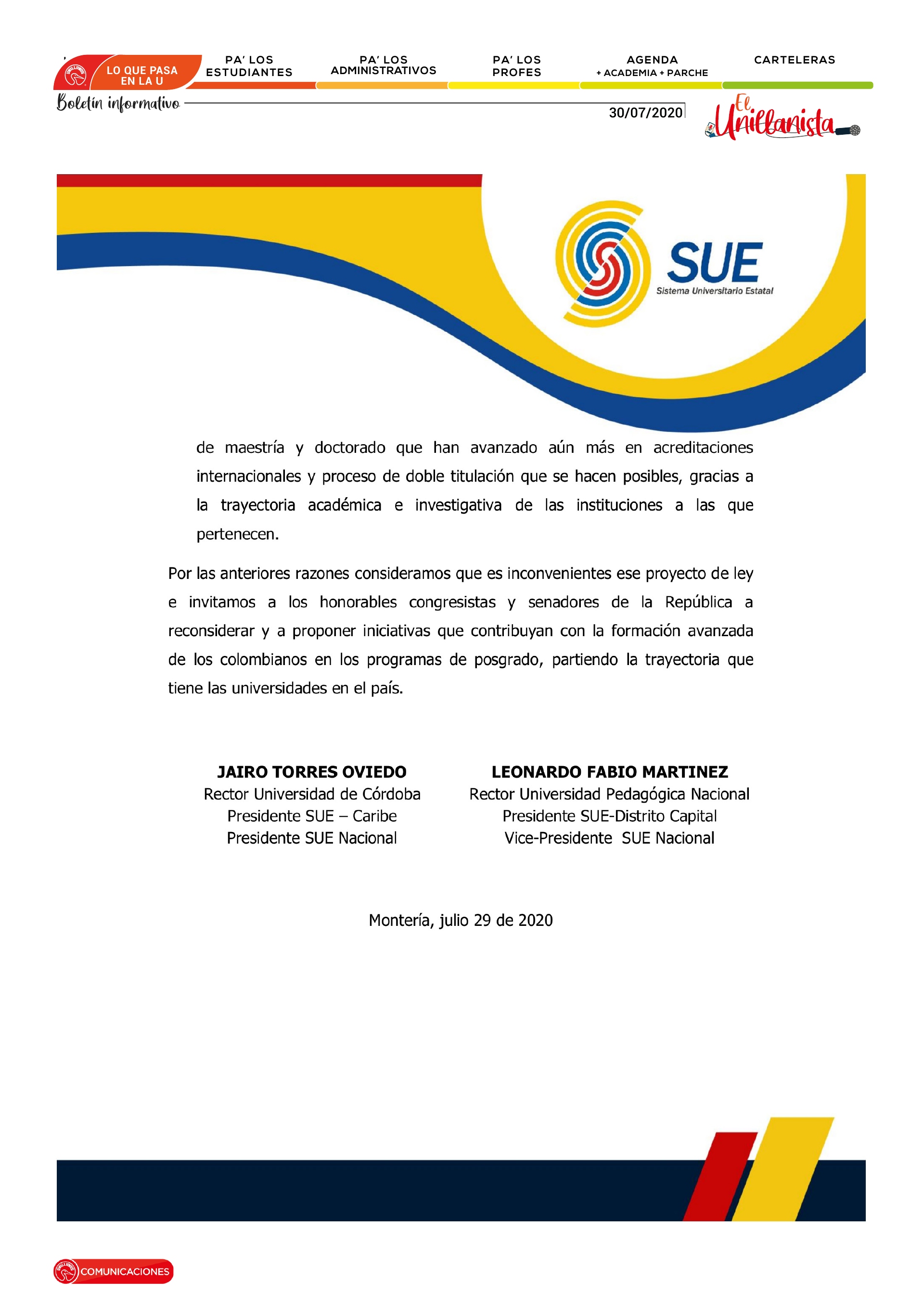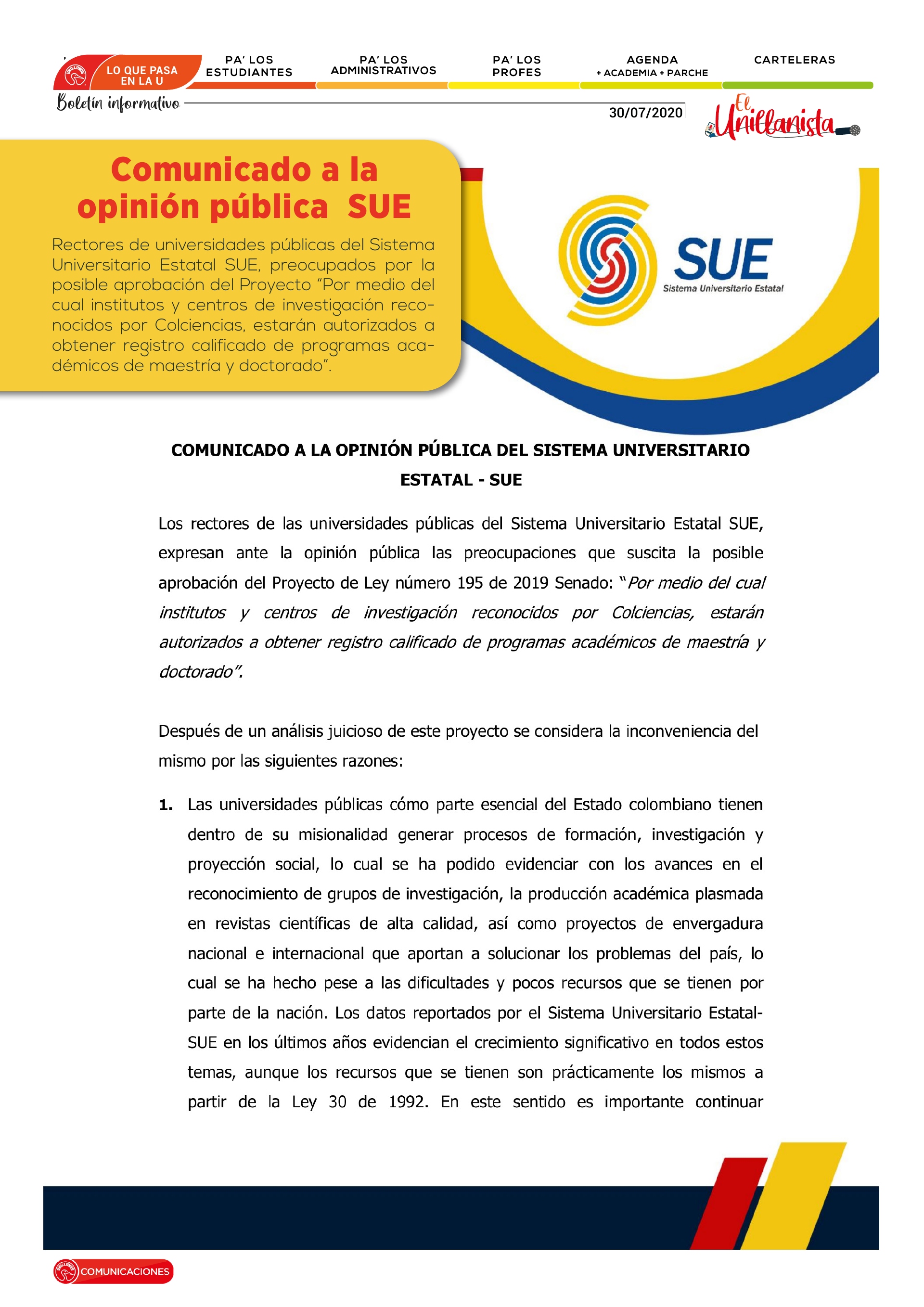 Comunicado a la opinión pública - SUE