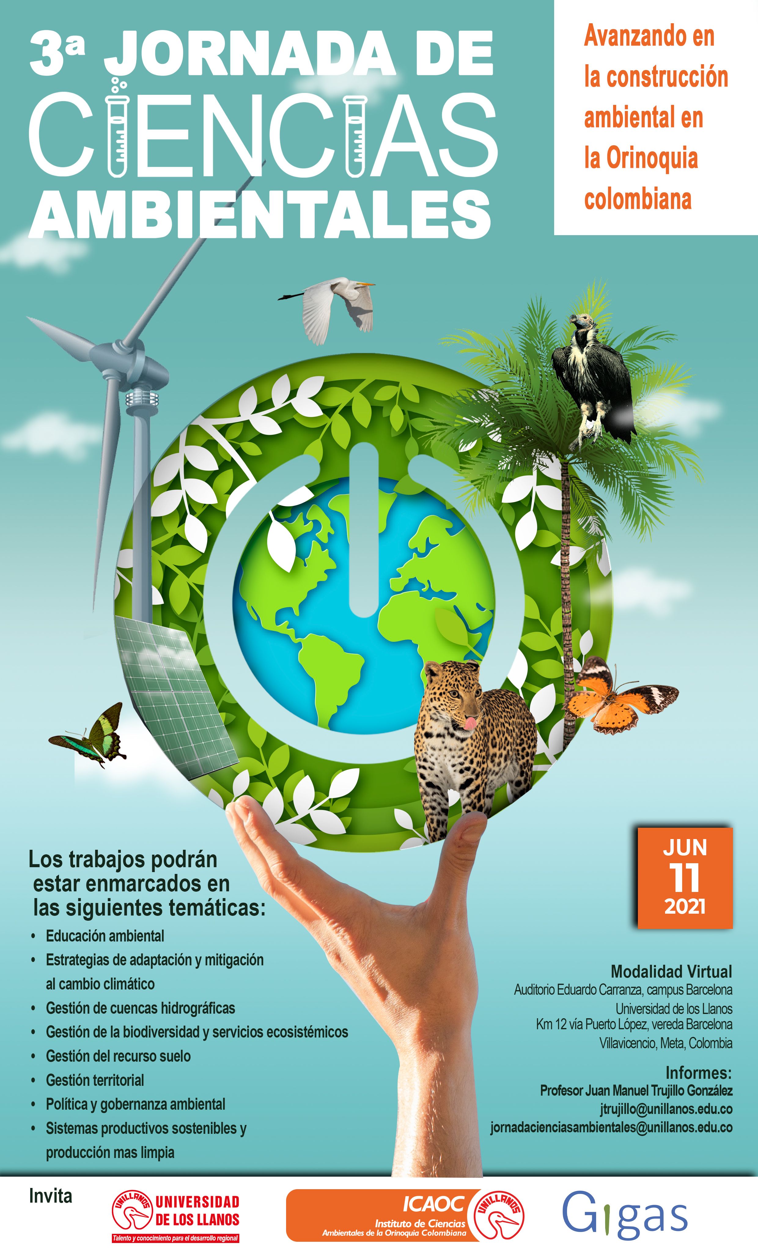 La Universidad de los Llanos desde el Instituto de Ciencias Ambientales de la Orinoquia Colombiana - ICAOC y el Grupo De Investigación en Gestión Ambiental Sostenible - GIGAS, realizarán la III Jornada de Ciencias Ambientales que tendrá lugar el 11 de junio de 2021 de manera virtual.