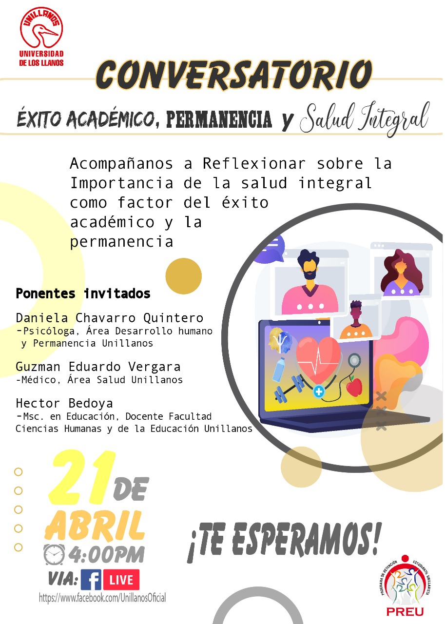 Resaltando la importancia de la salud en la vida académica, el Programa de Retención Estudiantil Unillanista – PREU de Unillanos realizará el conversatorio “Éxito Académico, Permanencia y Salud Integral”.