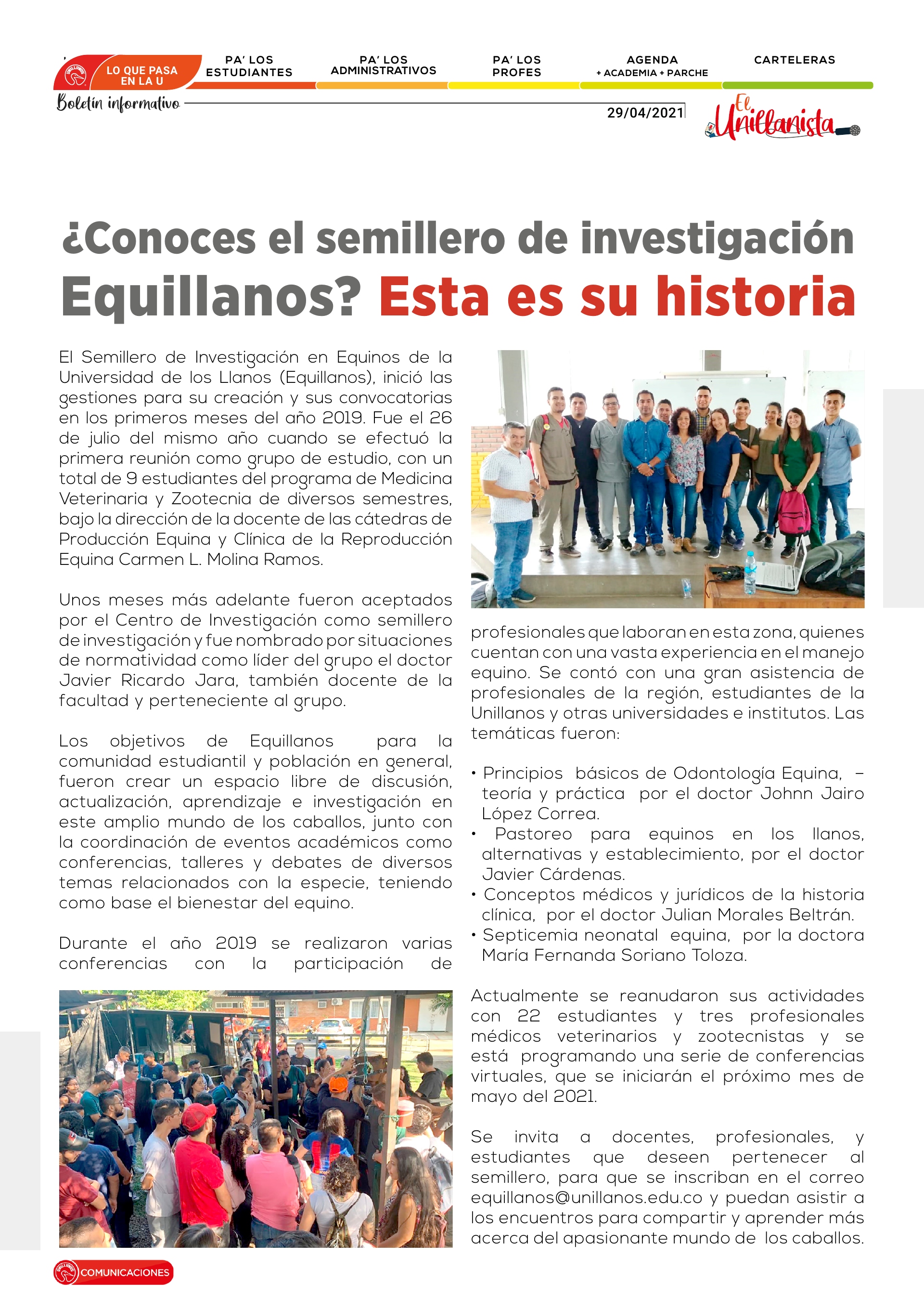 Conoce al semillero de investigaciòn Equillanos