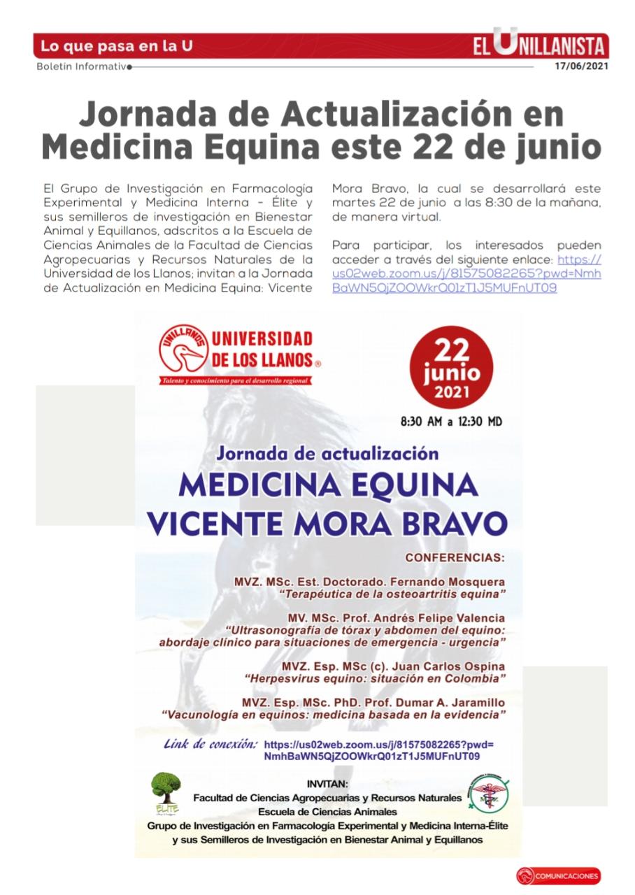Jornada de Actualización en Medicina Equina este 22 de junio