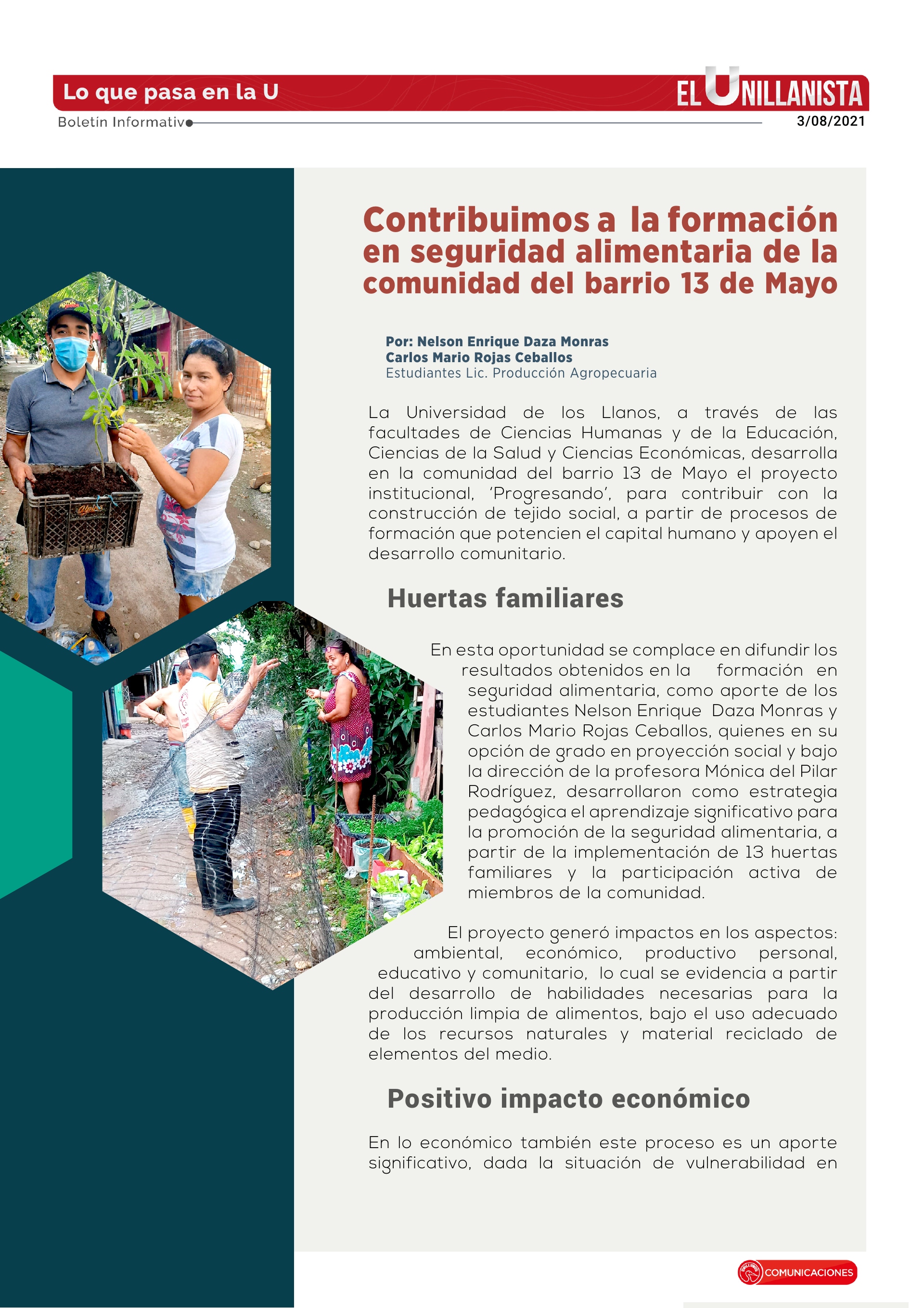 Contribuimos a la formación en seguridad alimentaria de la comunidad del barrio 13 de mayo