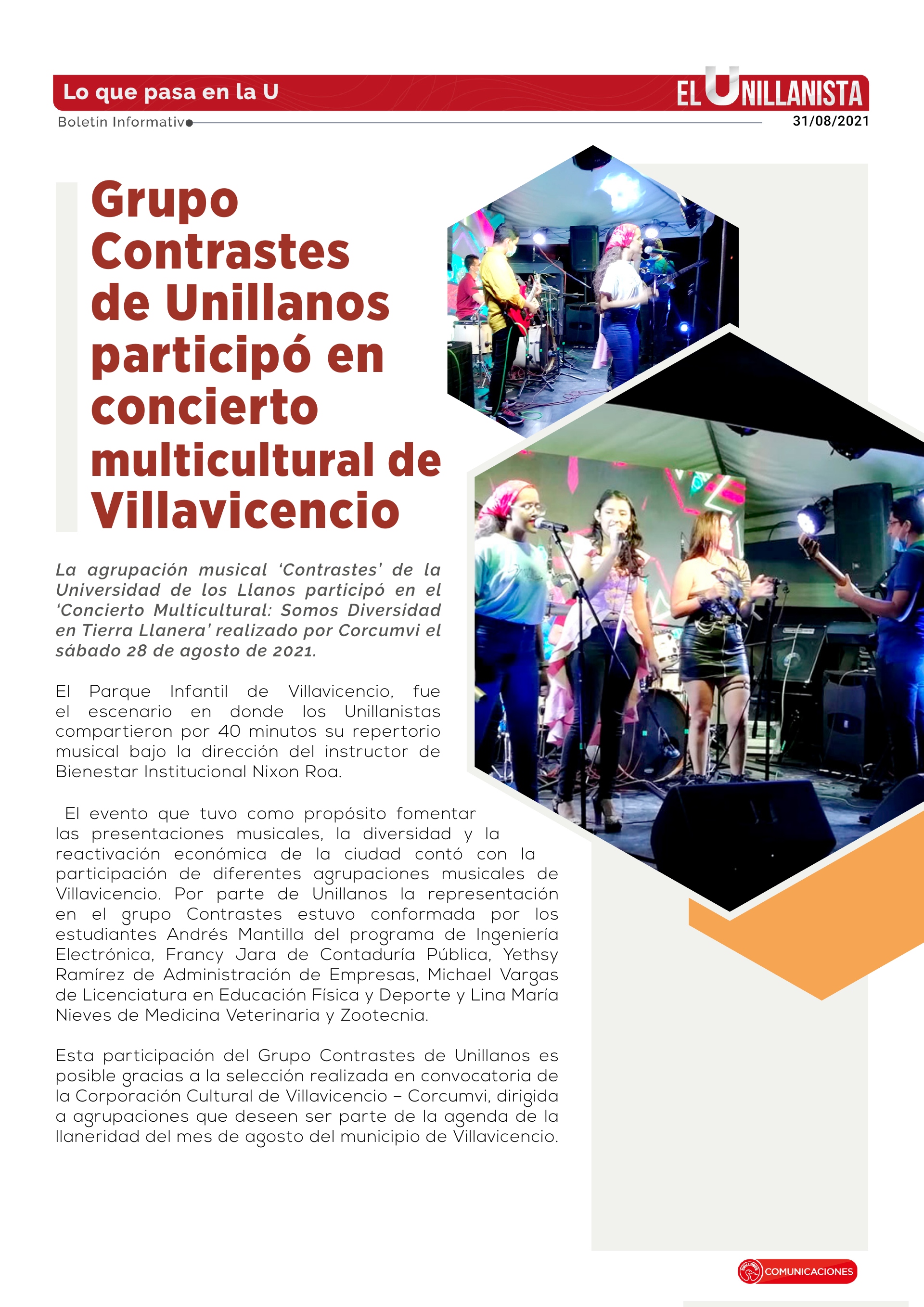 Grupo Contrastes de Unillanos participó en concierto multicultural de Villavicencio