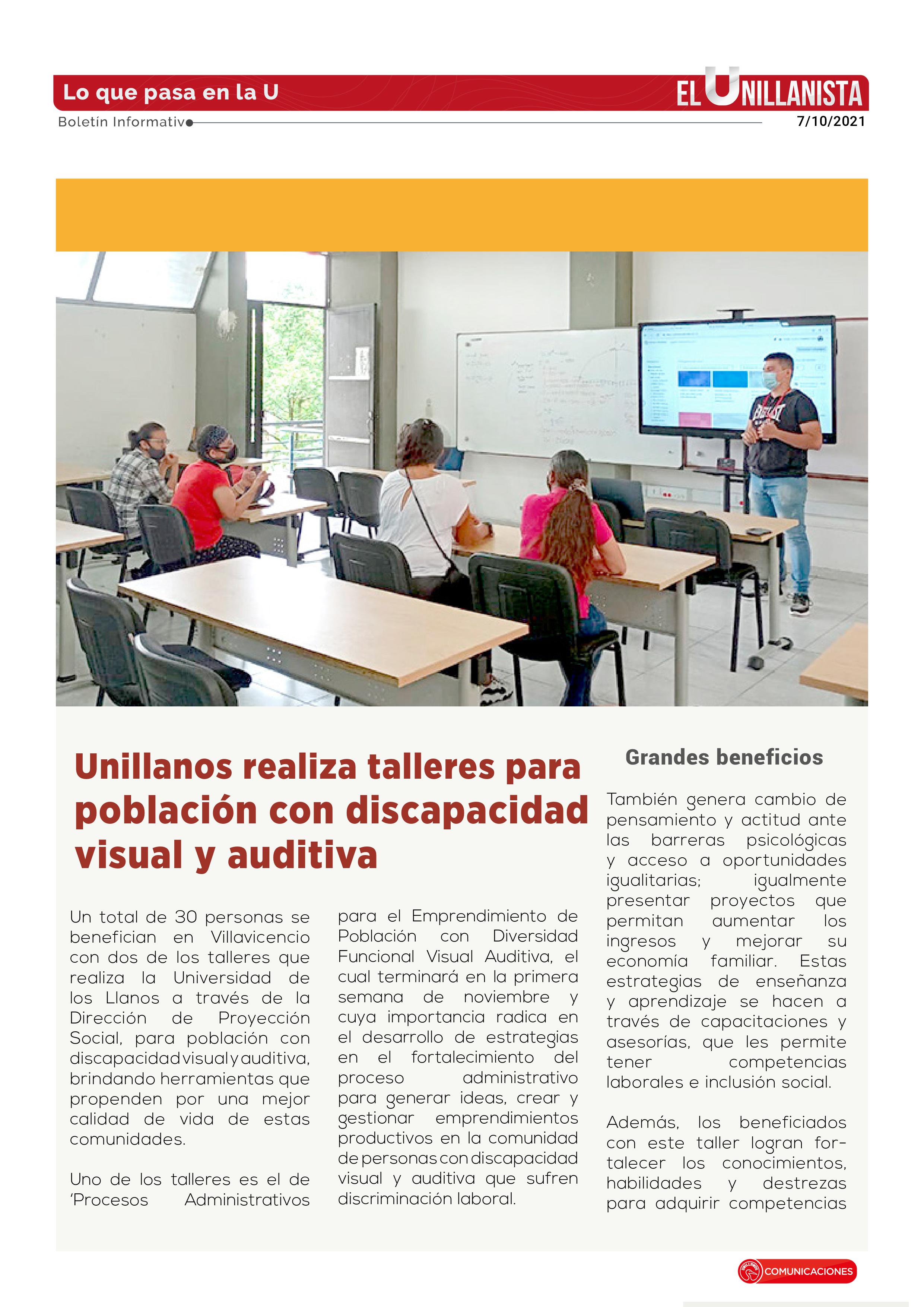 Unillanos realiza talleres para población con discapacidad visual y auditiva