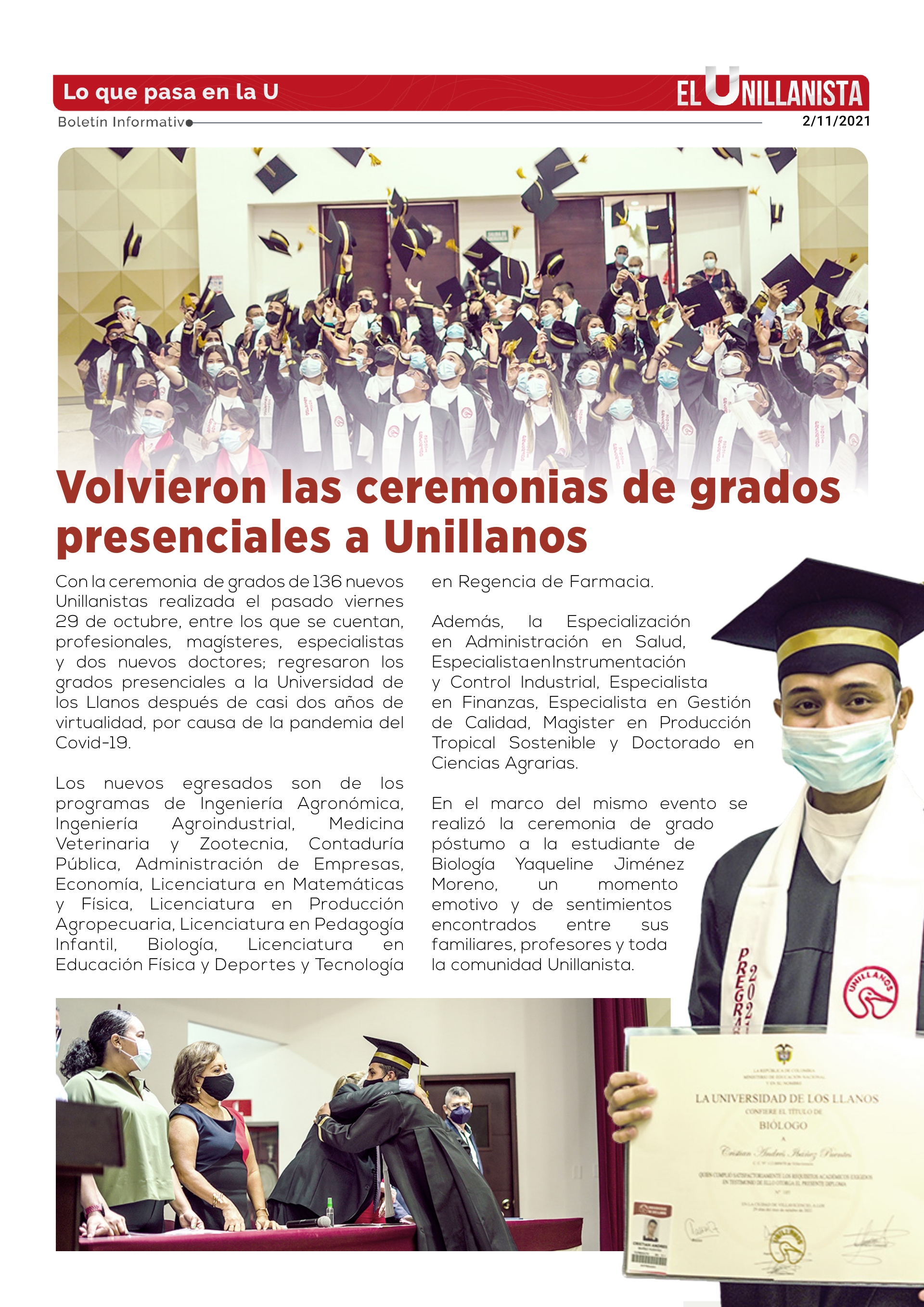 Volvieron las ceremonias de grados presenciales a Unillanos