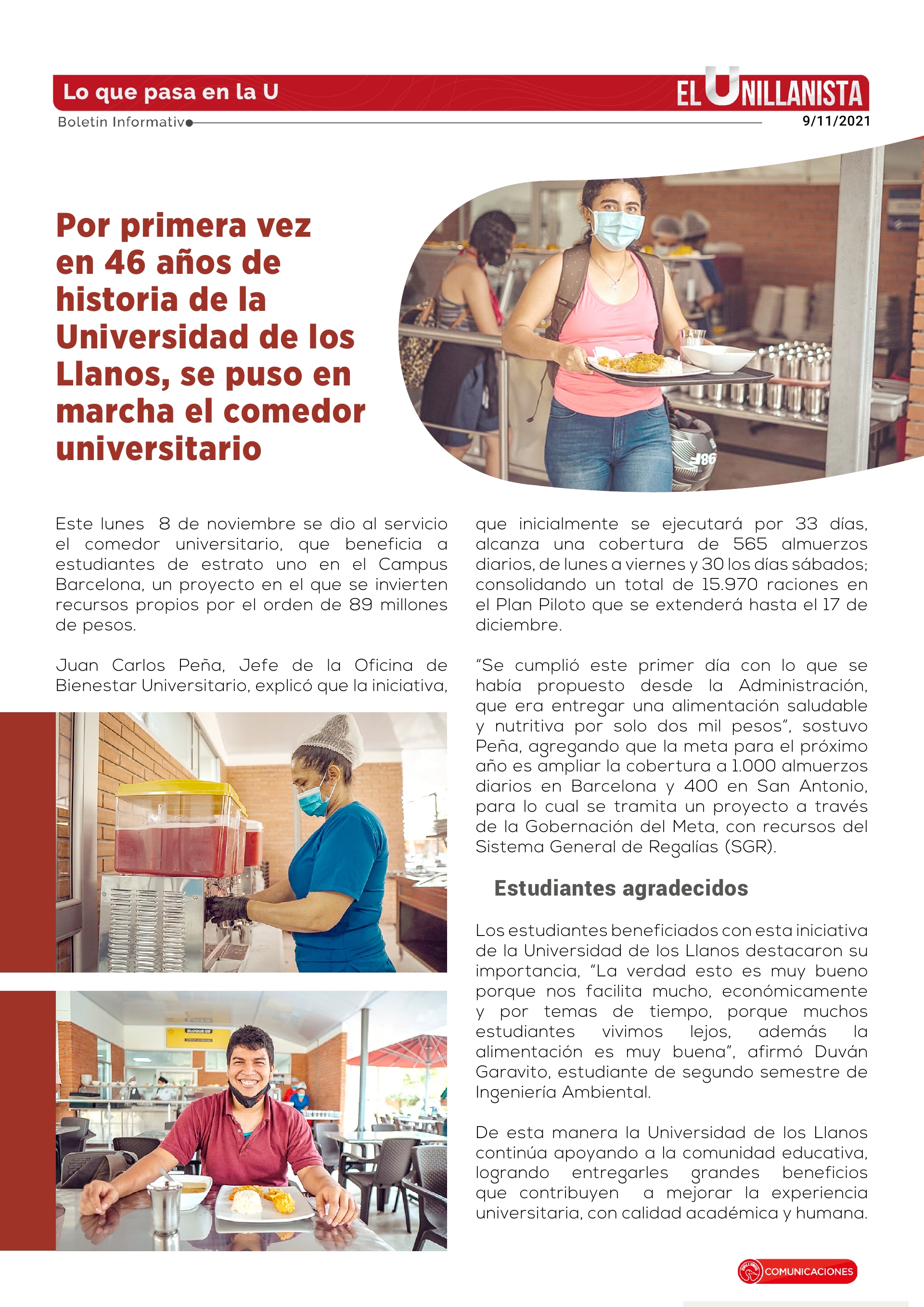 Por primera vez en 46 años de historia de la Universidad de los Llanos, se puso en marcha el comedor universitario