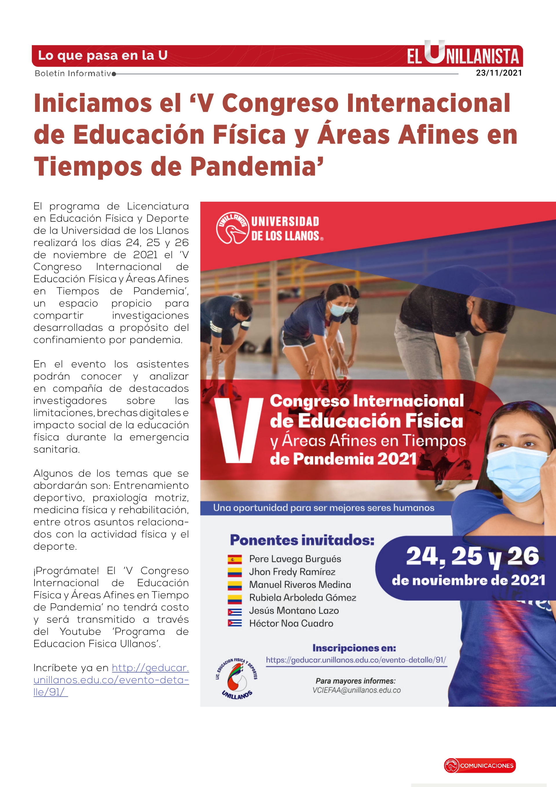 Iniciamos el 'V Congreso Internacional de Educación Física y Áreas Afines en Tiempos de Pandemia'
