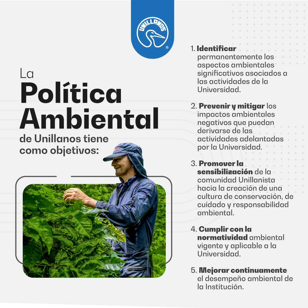 Conoce más sobre la Política Ambiental de Unillanos - Acuerdo Superior Nª 022 de 2021 en este enlace https://sig.unillanos.edu.co/dmdocuments/22.%20Acuerdo%20Superior%20No.%20022%20de%202021.pdf