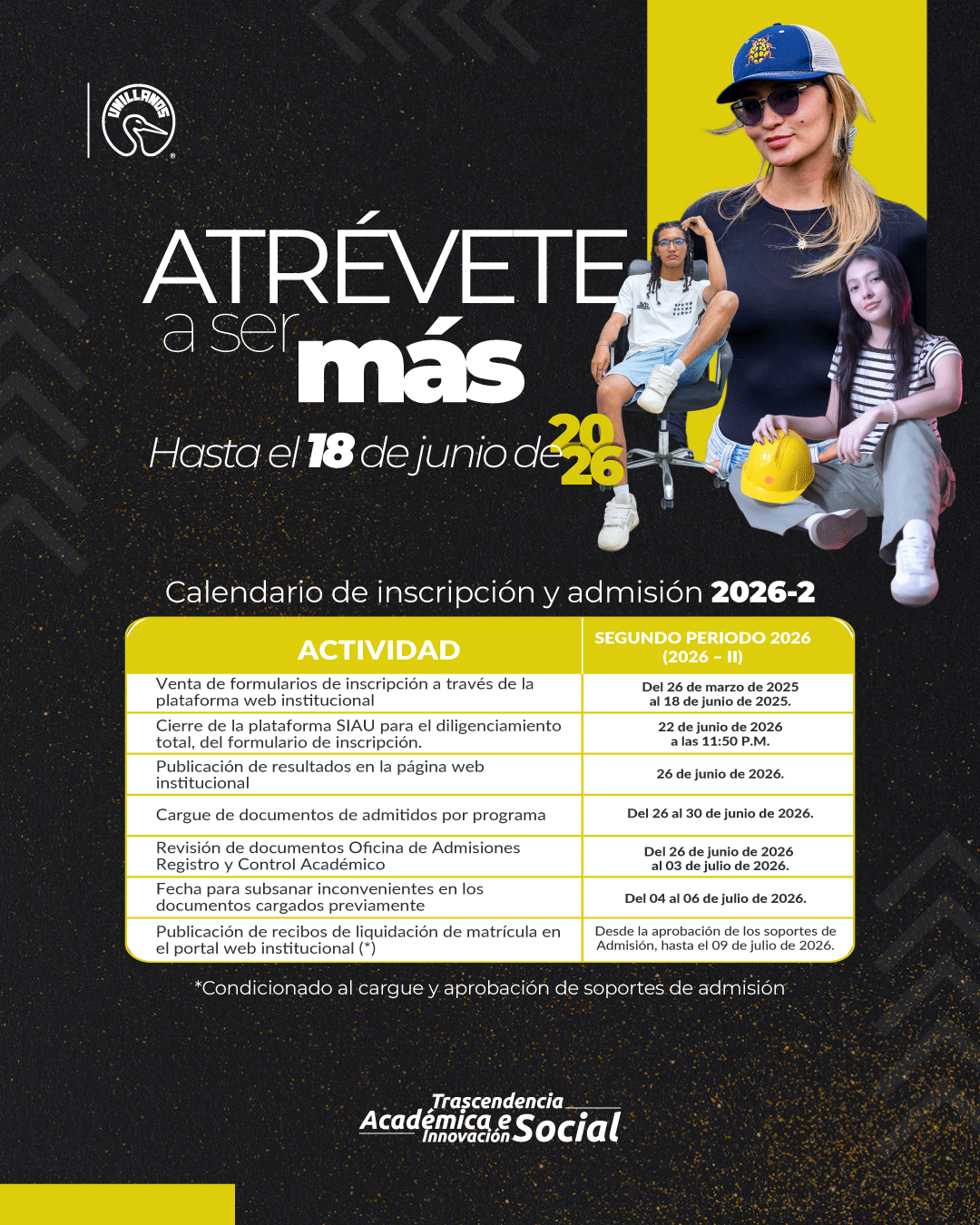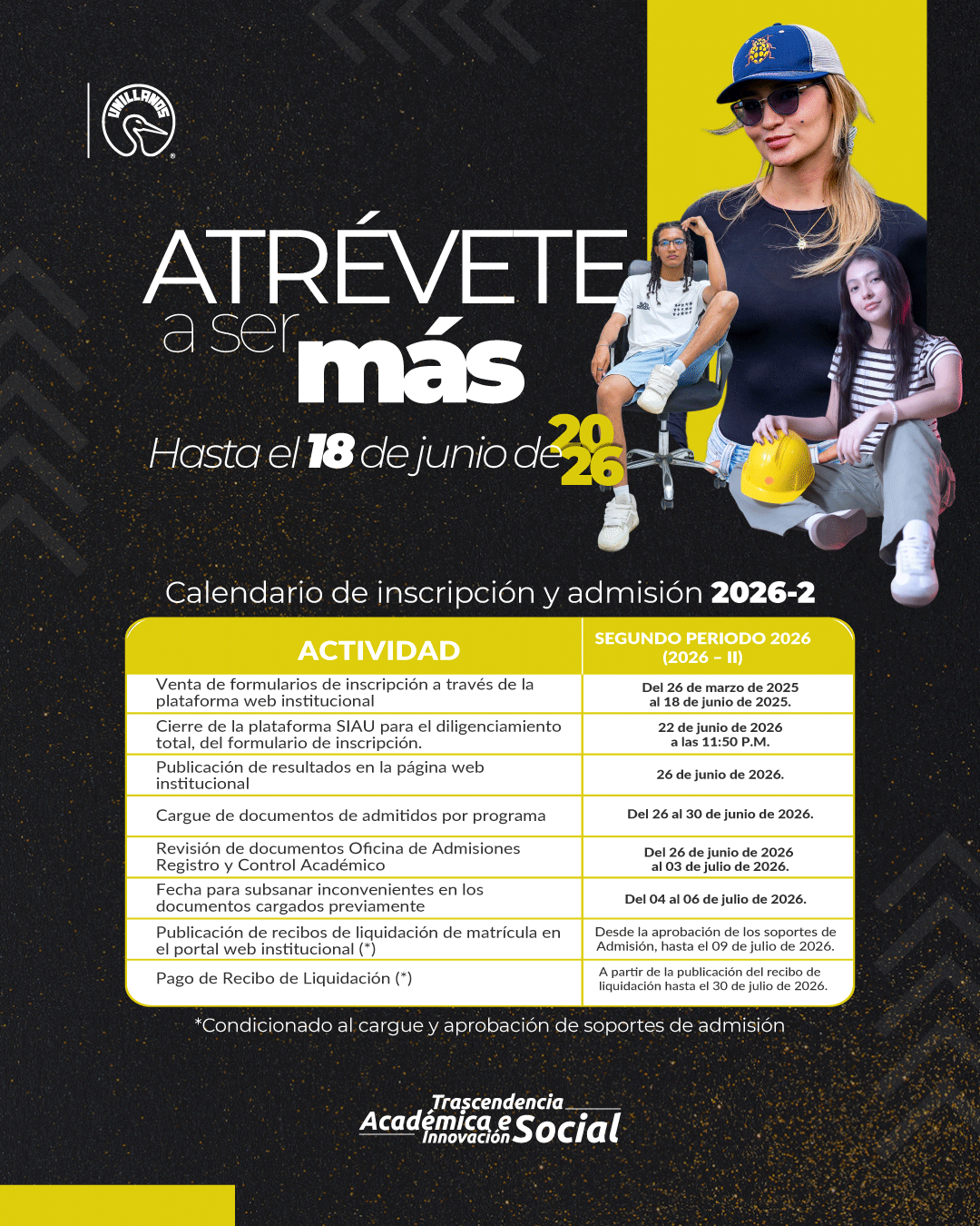 CRONOGRAMA DE INSCRIPCIÓN Y ADMISIÓN SEGUNDO PERIODO 2026 ( 2026 - 2 )
